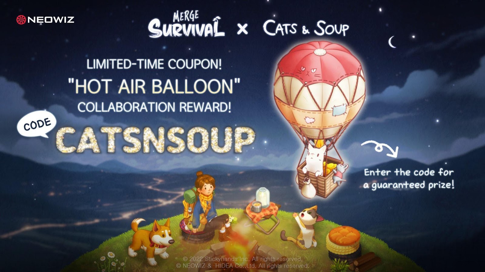 NEOWIZ is bringing together two of its popular mobile titles for a survival adventure with furry friends. Starting today, fans of the relaxing idle game Cats & Soup can enjoy themed decorations and new content in the puzzle game Merge Survival: Wasteland.