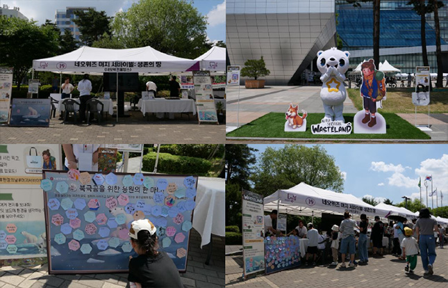 극심한 환경 파괴로 인한 황폐한 세계에서 살아남은 생존자의 시점을 바탕으로 세상을 정화해 나가는 이야기를 담은 네오위즈의 ‘머지 서바이벌: 생존의 땅’ 게임으로 성남시 주최의 ‘제29회 환경의 날 기념식’ 기업 부스에 참여하였습니다. 게임 속 ‘아기 북극곰’을 주제로 시민들이 참여하는 활동을 마련하였고, 기후 위기로 사라져 가는 동물에 대해 함께 생각해 보는 시간을 가졌습니다. [더 보기]