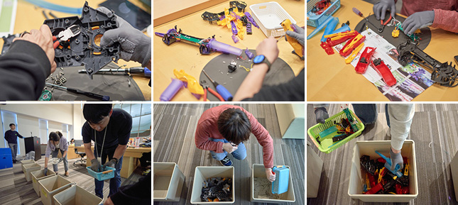 자원을 잇는, 장난감 분해