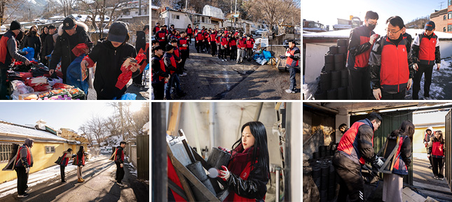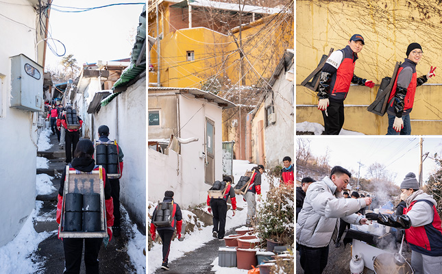12월 첫째 주, 오색오감의 마지막을 장식하는 활동은 '연탄 나눔'입니다. 연탄에 의지하여 겨울을 나야 하는 에너지 취약계층에 연탄 후원과 배달을 하고 있는데요. 오색오감 연탄 배달에 참여하는 많은 분들이 이 활동을 하면 '한 해가 다 갔구나' 하는 생각이 든다고 합니다. 연탄 배달 활동지의 재개발 소식이 점차 전해지고 있어, 앞으로 얼마나 더 이 활동이 가능할지 모르겠습니다. 이제는 이주한 가구가 많아 한꺼번에 배달이 많이 필요한 가구가 모여있지 않다고 하여, 인원 규모를 60여 명으로 줄여 활동을 하게 되었습니다. 그래도 아직은 연탄을 필요로 하는 가정들이 있습니다. 교통대란이 있었을 만큼 많은 첫눈이 내린 다음 날이어서 걱정을 하며 서울시 상계동의 활동지를 찾았습니다.