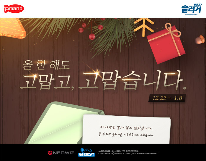 [2019-1217] ㈜네오위즈(대표 문지수)가 서비스하고 ㈜와이즈캣(대표 남민우)이 개발한 온라인 야구 게임 ‘슬러거’가 연말 연시를 맞이하여 ‘2020 피에스타’를 진행한다고 17일 밝혔다.