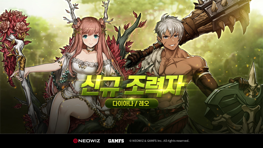 이와 함께 기존 용병의 조력자 2종도 업데이트됐다. 5성 지원형 용병 플로리아의 조력자 ‘다이아나’는 오래된 정령 숲 심장부에 사는 정령으로, 기생꽃의 양분이 될뻔한 그녀를 플로리아가 구해주고 이후 숲을 지키기 위해 계약하게 된다.