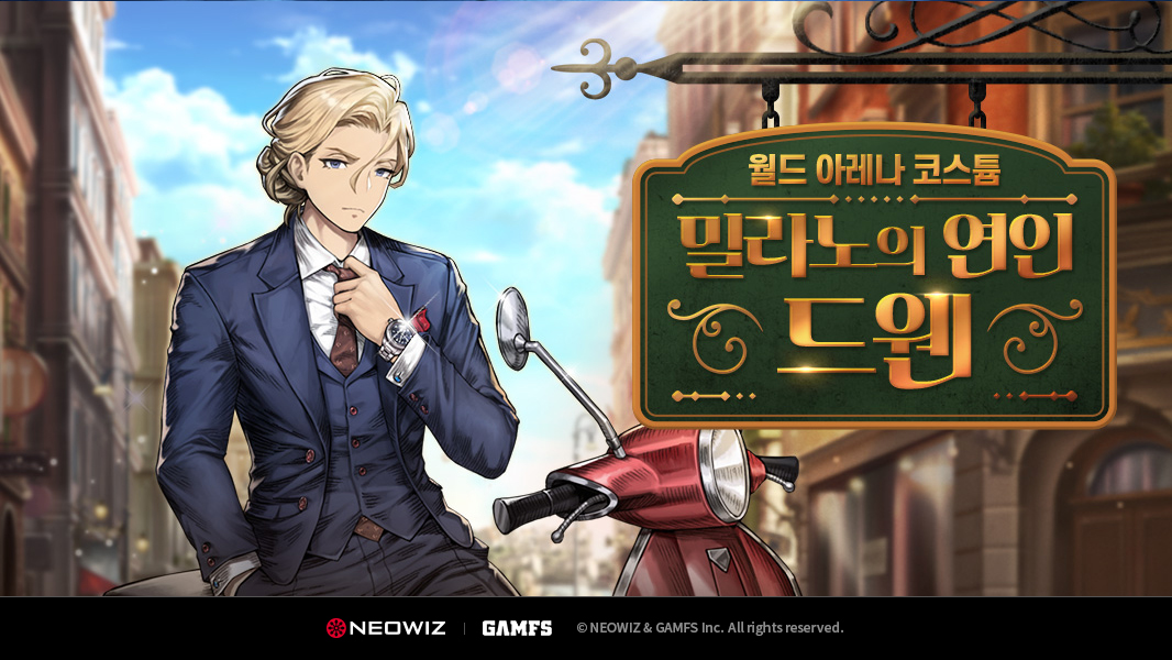이와 함께 월드 아레나 여섯 번째 개최지인 이탈리아 컨셉으로 신규 코스튬 ‘밀라노의 연인’도 추가됐다. 5성 공격형 용병 드웬이 그 주인공으로 시즌 보상인 월드 티켓을 통해 구매할 수 있다.