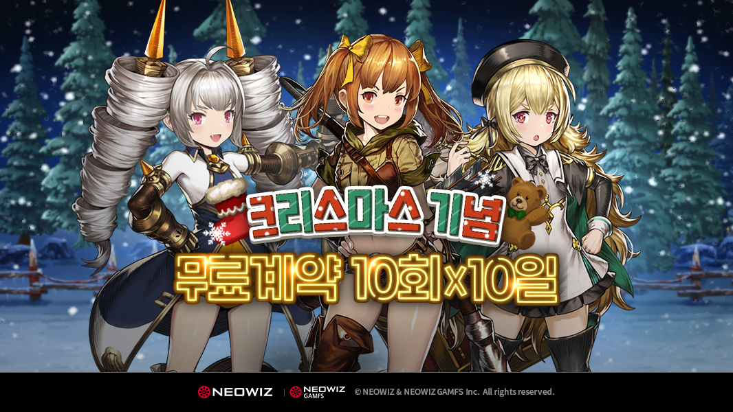 여기에 오는 1월 7일까지 룰렛의 보상을 2배로 제공하고 확률업 계약 10+2 이벤트도 진행한다. 같은 기간 길드에 가입 후 주어지는 미션을 수행하면 '전설계약서', '레드 슬라임' 등의 아이템을 받을 수 있고, 12월 24일부터 1월 3일까지 게임에 접속만 해도 무료 계약 10회를 10일 동안 할 수 있다.