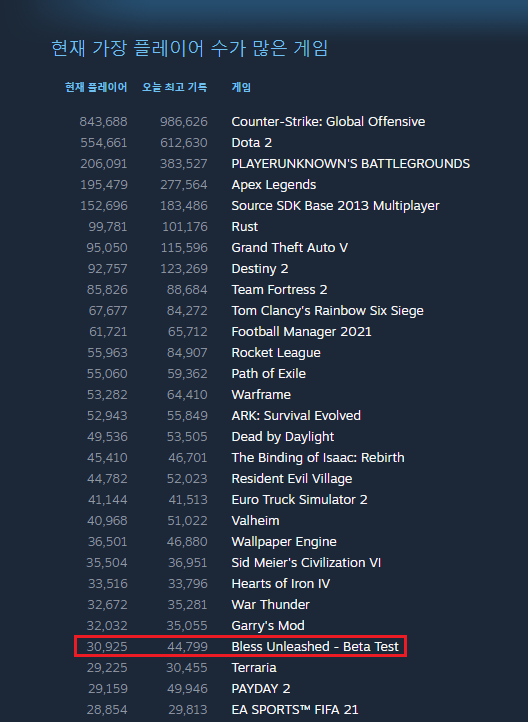 <별첨> 블레스 언리쉬드 PC 동시 접속자 스크린 샷